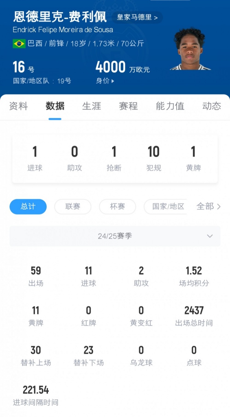 “换一个地方发挥你的天赋是正确的选择,比如卡瓦哈尔,当时他在皇马没有位置,于是去了德国,并成为勒沃库森最好的球员,他度过了两个梦幻般的赛季。卡瓦哈尔以更高的水平和首发球员的身份回归,之后就一切顺利了。对恩德里克来说,现在他也几乎无法承担首发角色,我认为他应该尝试外租,这样他就可以充分发挥自己的潜力。”